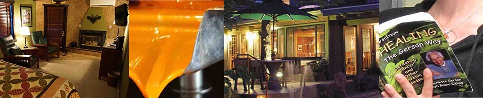 We can offer the same approach, and utilize the works of Dr. Max Gerson, use the same modality, offer the meals, juices and coffee enemas, but we are not allowed to use or promote the name, especially in regards to the treatment cancer. We are not allowed to state that we are treating or curing cancer. Some of the medical staff and supportive staff have taken the Gerson Institutes educational and training programs, and the physician Gerson training module 1. The retreat group has been offering wellness retreats for the past 10 years. The doctors are Naturopathic Physicians that extensive training and experience in this method of therapy and care. This is what we specialize in as well as work with each individual to customize the treatment, modalities and therapies that are right for them.